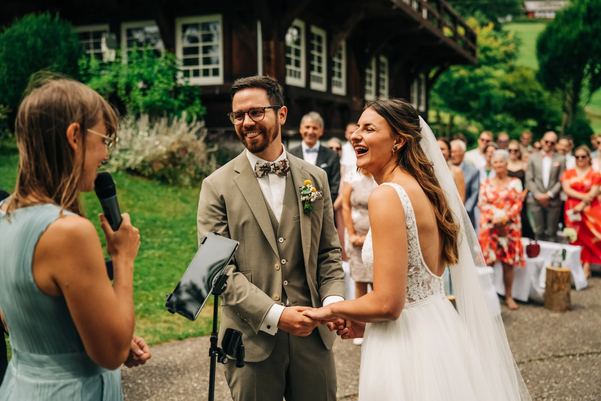 Ihr als Brautpaar steht im Mittelpunkt und ihr sollt euch absolut wohlfühlen. Die Zeremonie gestalte ich deshalb komplett mit euch zusammen im Team.